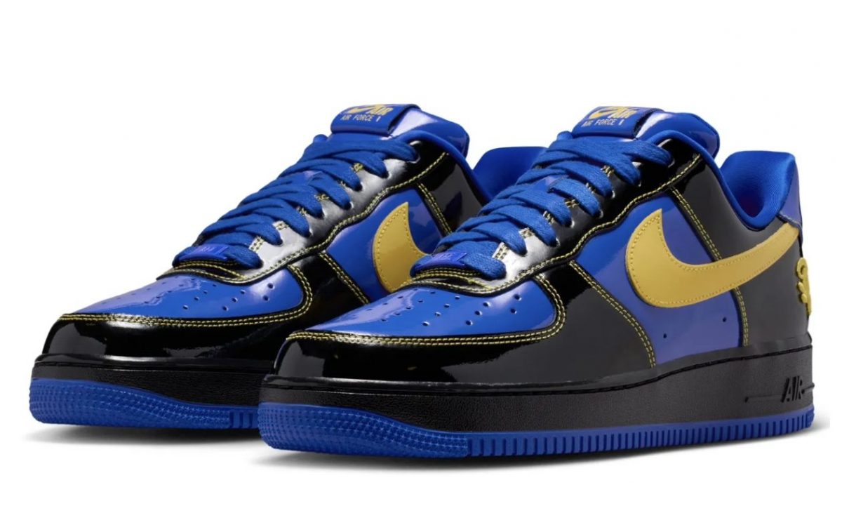 El modelo ha sido visto en varios colores y se aleja de las Air Force 1 clásicas apostando por paneles de charol ultrabrillante en lugar del cuero liso habitual. El contraste también está a la orden del día, con combinaciones azul-fucsia o amarillo-azul, pero también opciones full granate o más discretas en tono negro.
